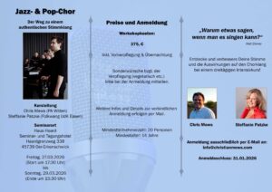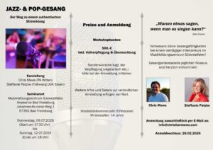 Und im Folgenden findest Du die aktuellen Infos über Workshops mit mir in 2026. Die Anmeldung ist jetzt schon möglich: